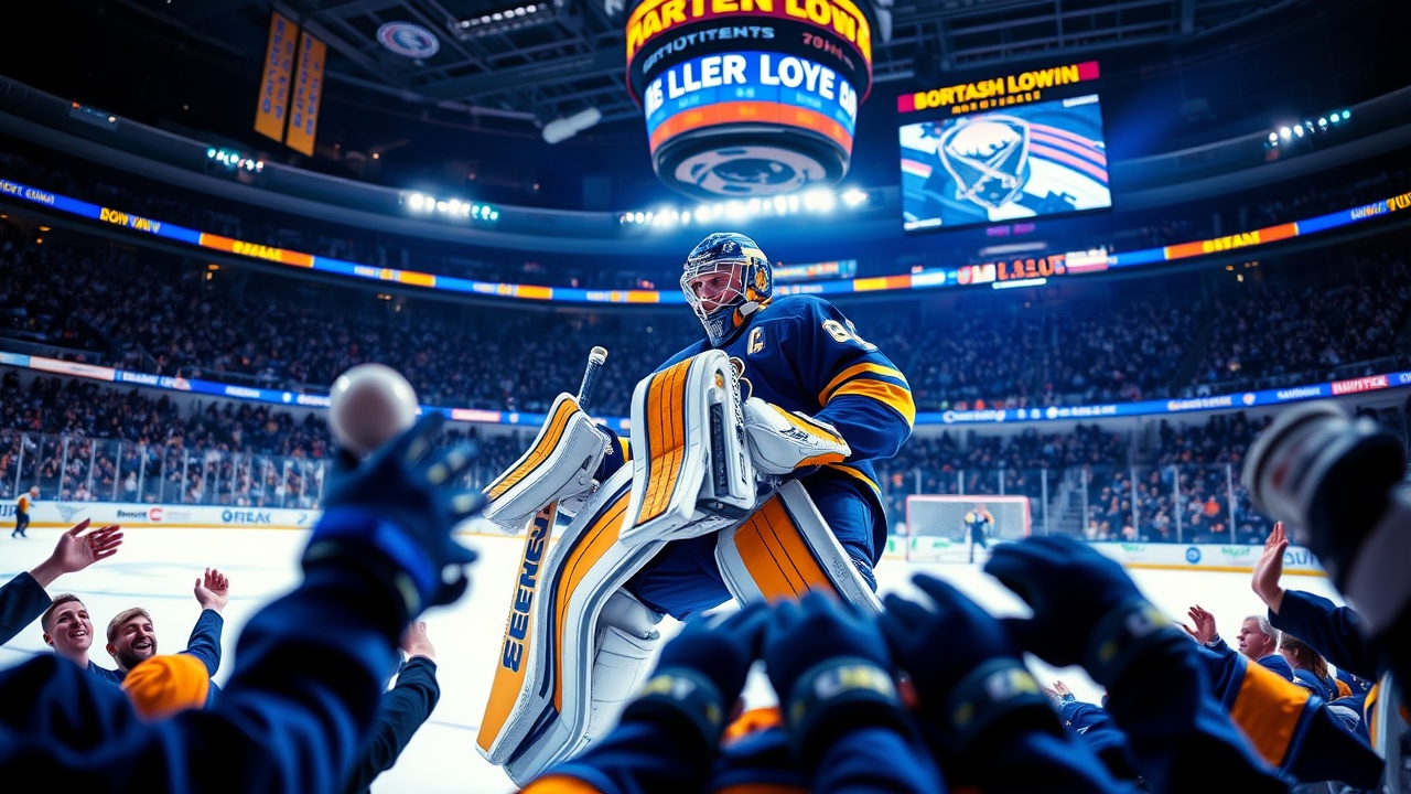 NEW YORK (AP) — Jason Zucker erzielte zwei Tore und Alex Lyon hielt 26 Schüsse, wodurch er mit seinem neunten Sieg in Folge einen Rekord der Buffalo Sabres egalisierte. Am Samstag besiegten die Sabres die New York Islanders mit 5:0. Tage Thompson, Rasmus Dahlin und Alex Tuch trugen ebenfalls zum Sieg bei, während die Sabres ihren dritten Sieg in Folge und den fünften in den letzten sieben Spielen feierten. Ryan McLeod und Mattias Samuelsson steuerten jeweils zwei Vorlagen bei.