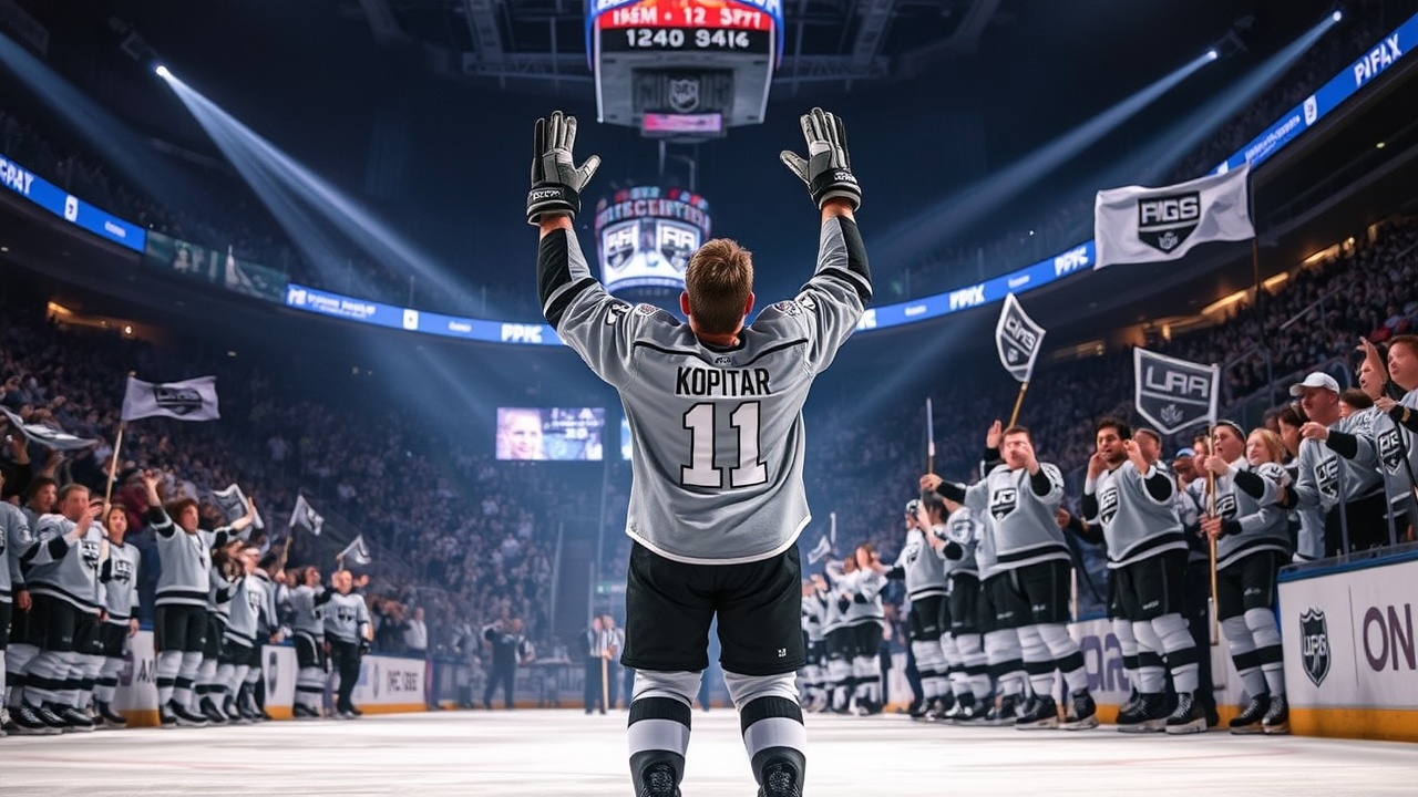 Der Kapitän der Kings, Anze Kopitar, feierte am Samstag mit seinen Teamkollegen ein Tor im zweiten Drittel gegen die New Jersey Devils. Mit einem Ausgleichstor im dritten Drittel überholte Kopitar den Hall of Famer Marcel Dionne und wurde zum besten Torschützen der Kings aller Zeiten.