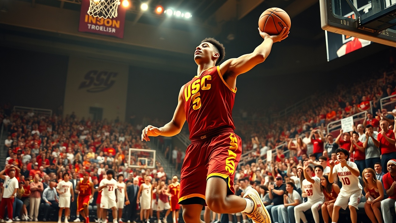 „USC schien auf dem besten Weg zu sein, das Spiel zu dominieren, als Woods mit 11:42 Minuten auf der Uhr einen Dreipunktwurf versenkte und den Trojans einen 55:41-Vorsprung verschaffte.“
