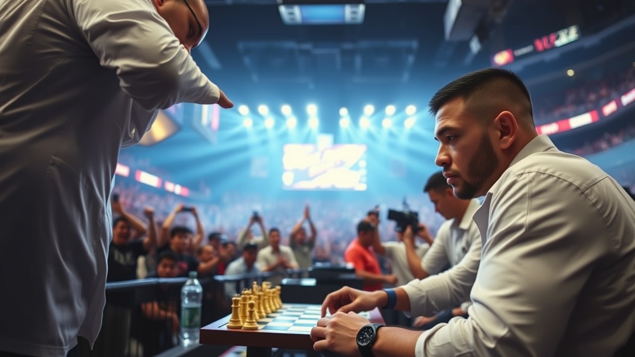 Doch was Henry vor dem Stopp machte, könnte vielleicht am beeindruckendsten gewesen sein. Anstatt während der einminütigen Pause zwischen Runde 1 und 2 auf dem Hocker zu sitzen, um Atem zu schöpfen und einige Ratschläge von seiner Ecke zu erhalten, ließ sich Henry von Garry Kasparov inspirieren und wurde von den BKFC-Kameras dabei gefilmt, wie er auf einem Knie ein echtes Schachspiel mit seinem Team spielte. Ja, Sie haben richtig gelesen: Schach auf einem Miniatur-Schachbrett. Mitten in einem Bare-Knuckle-Boxkampf. Das Video ist genau so absurd, wie Sie es sich vorstellen können.