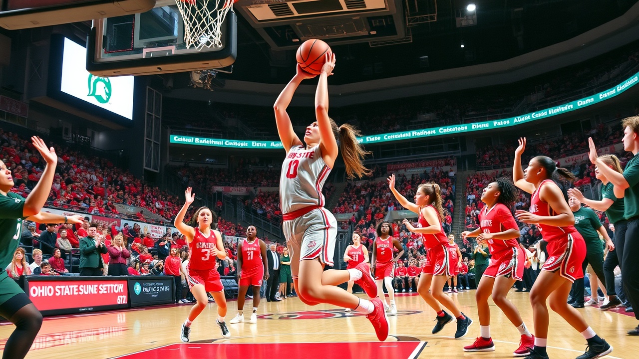 Die Buckeyes hatten einen beeindruckenden 15-0 Lauf im zweiten Viertel, der sie auf 38-11 in Führung brachte, und sie gingen mit einer 49-26 Führung in die Halbzeitpause.