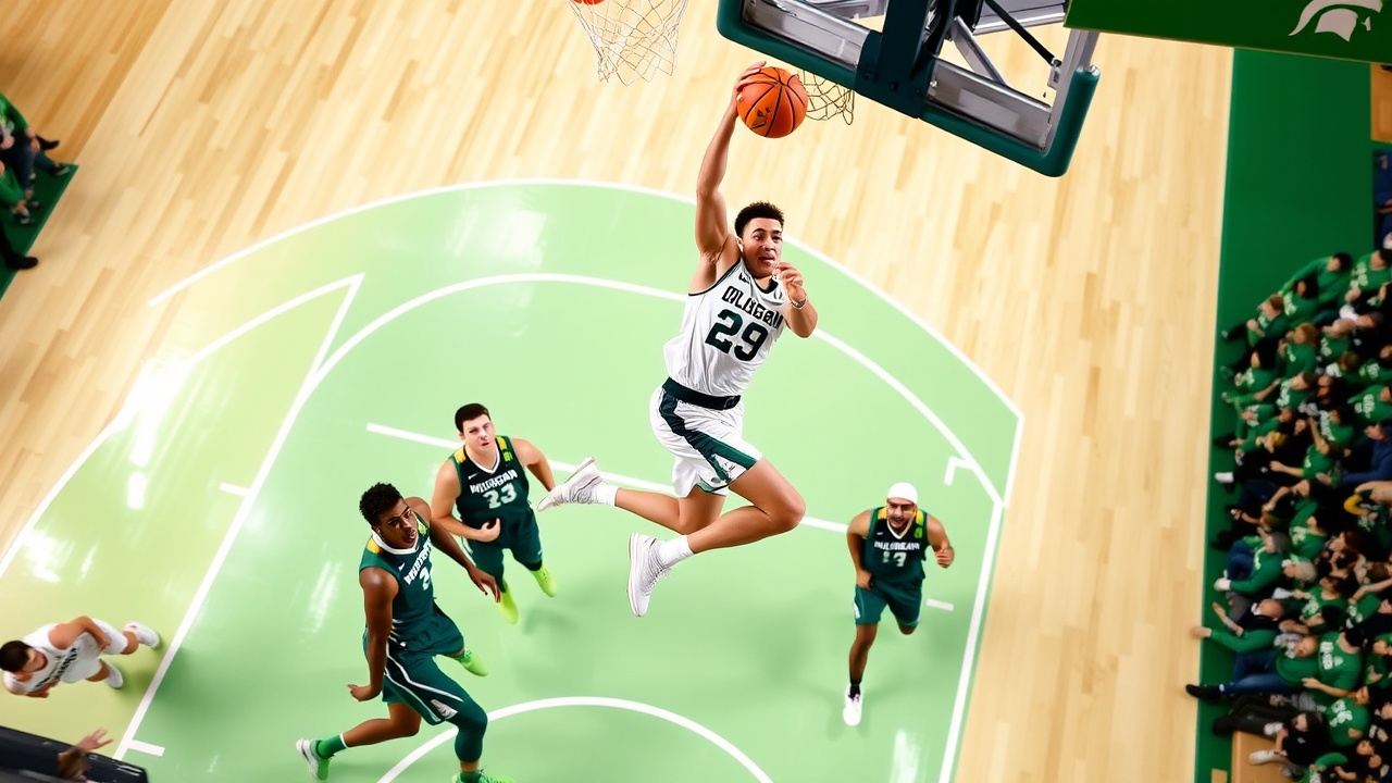 Michigan State, das am Samstag mit 80:63 gegen Washington gewonnen hatte, legte mit 13:4 vor, doch die Ducks antworteten und gingen durch einen Layup von Luke Johnson mit 22:21 in Führung. Die Spartans führten zur Halbzeit mit 28:26. Kwame Evans Jr. traf einen Jumper, und Ege Demir fügte einen Layup hinzu, um die Ducks mit 38:35 in Führung zu bringen. Die Spartans reagierten mit aufeinanderfolgenden Körben von Carson Cooper und Trey Fort, um die Führung zurückzuerobern.