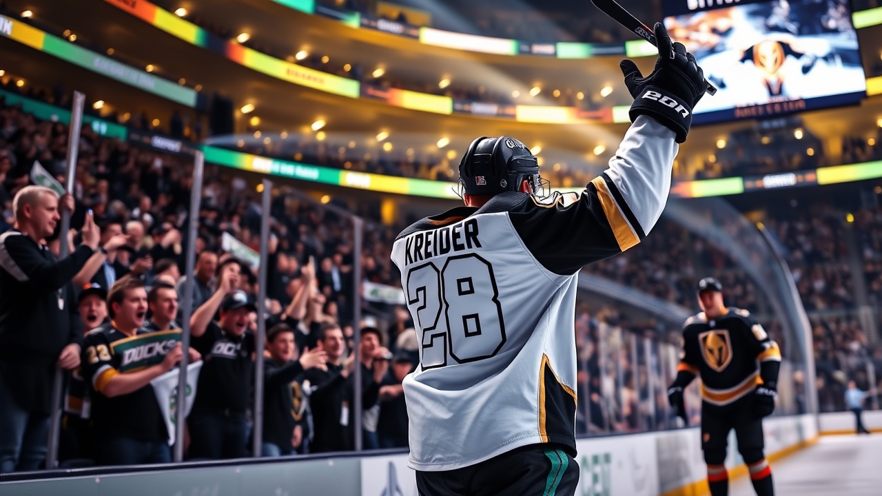 ANAHEIM, Kalifornien (AP) — Chris Kreider erzielte zwei Tore, Lukas Dostal parierte 27 Schüsse, und die Anaheim Ducks gewannen am Sonntagabend mit 4:3 gegen die Vegas Golden Knights. Damit sweepen sie ihre dreiteilige Saisonserie.