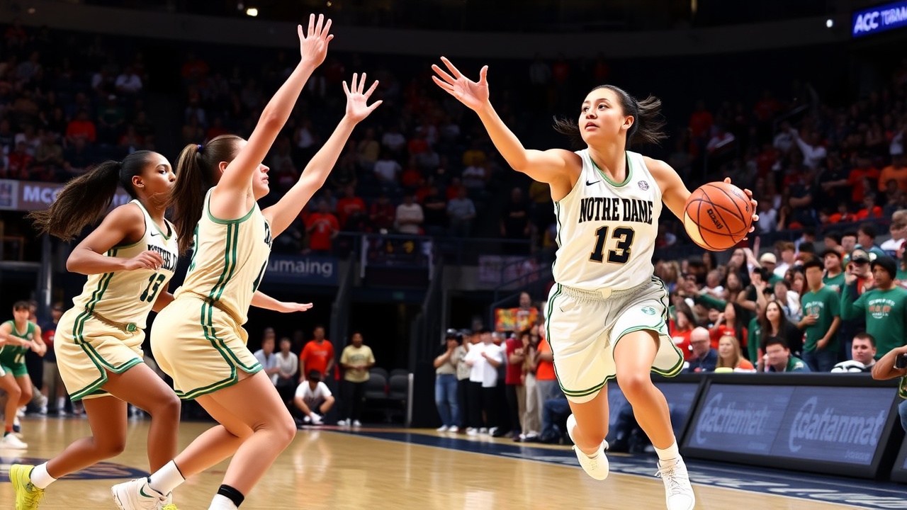 DULUTH, Ga. (AP) — Hannah Hidalgo erzielte 28 Punkte, sammelte acht Rebounds, verteilte fünf Assists und steuerte fünf Steals bei. Cassandre Prosper trug 12 Punkte zum Sieg bei. Die Nr. 5 gesetzten Notre Dame Fighting Irish besiegten die auf Platz 12 gesetzten Miami Hurricanes mit 69:54 in der zweiten Runde des ACC-Turniers.