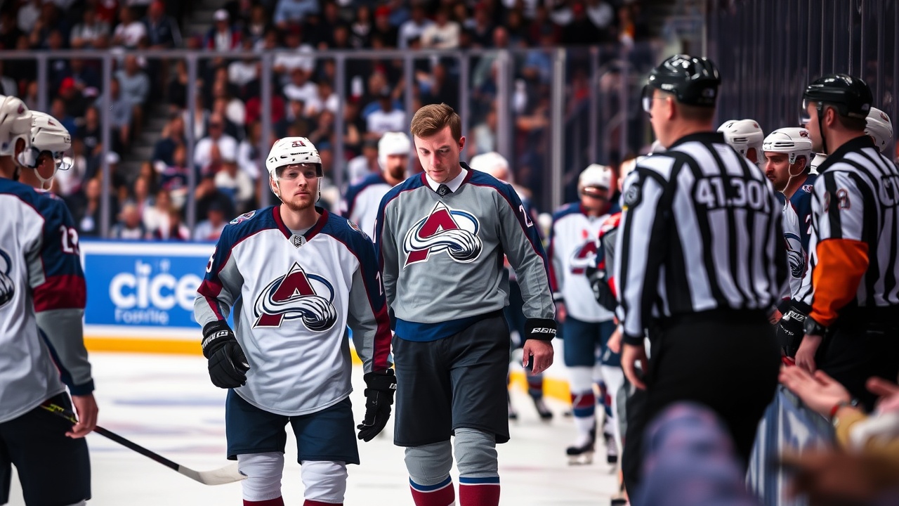 Kredit: DNVR. Jared Bednar war wütend über MacKinnons Ausschluss. Nathan MacKinnon erhielt eine fünfminütige Strafe nach einer beängstigenden Kollision mit Connor Ingram. Tristan Jarry trat für Ingram ins Spiel.