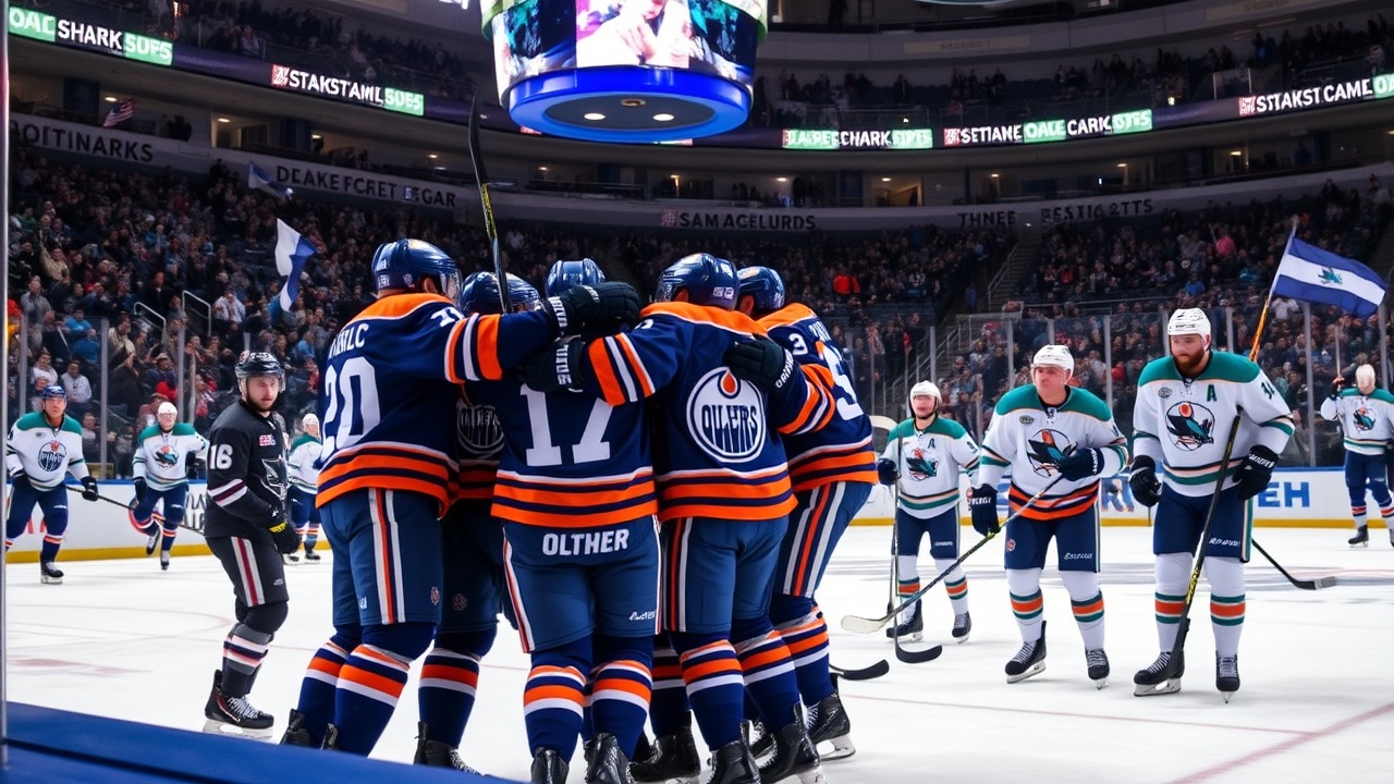 EDMONTON, Alberta (AP) — Zach Hyman erzielte 1:06 Minuten in der Verlängerung das entscheidende Tor, nachdem Evan Bouchard es mit 59 Sekunden vor Ende der regulären Spielzeit ausgeglichen hatte. Die Edmonton Oilers kamen im dritten Drittel von einem 3-Tore-Rückstand zurück und besiegten die San Jose Sharks am Donnerstagabend mit 4:3.