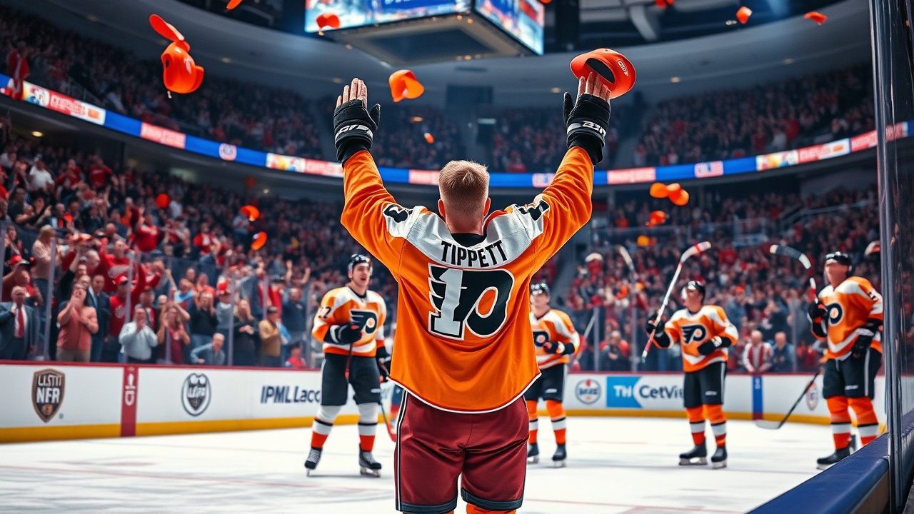 DETROIT (AP) — Owen Tippett erzielte einen Hattrick, während die Philadelphia Flyers einen späten Aufholversuch der Detroit Red Wings überstanden und am Samstagabend einen wichtigen 5:3-Sieg feierten. Tippetts dritter Hattrick in seiner Karriere bringt ihm in den letzten neun Spielen insgesamt sieben Tore ein. Die Flyers haben sieben dieser neun Spiele gewonnen und liegen nun drei Punkte hinter den Columbus Blue Jackets, die den zweiten Wild-Card-Platz in der Eastern Conference belegen.