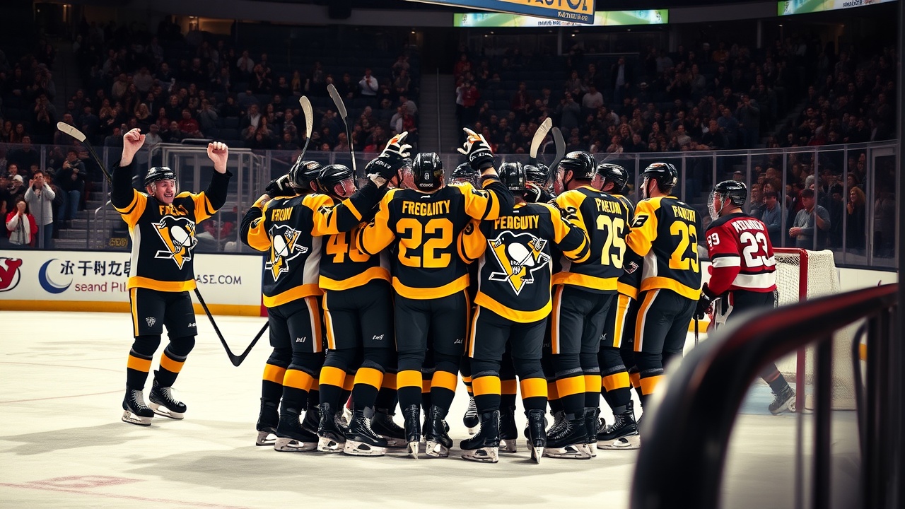 NEWARK, N.J. (AP) — Evgeni Malkin erzielte im Rahmen seines Zwei-Punkte-Spiels ein Tor, Sidney Crosby bereitete zwei Tore vor und Kris Letang hatte einen Assist, als die Pittsburgh Penguins die New Jersey Devils am Donnerstagabend mit 5:2 besiegten und sich damit einen Playoff-Platz sicherten. Die Penguins sind zum ersten Mal seit 2022 wieder in den Playoffs, nachdem sie eine dreijährige Durststrecke beendet haben, die auf eine Serie von 16 aufeinanderfolgenden Qualifikationen folgte.