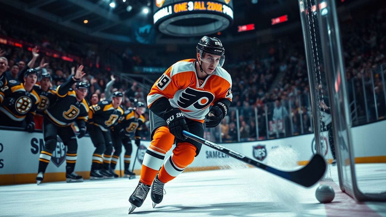 PHILADELPHIA (AP) — Porter Martone krönte eine beeindruckende erste Woche in der NHL mit einem Überzahl-Tor, das die Philadelphia Flyers näher an das Ende einer langen Playoff-Durststrecke brachte. Am Sonntag besiegten sie die Boston Bruins mit 2:1 nach Verlängerung. Der 19-jährige Martone, der gerade seine Saison an der Michigan State University beendet hat, ist genau der Schub, den die Flyers in der entscheidenden Phase benötigen, um sich einen begehrten Playoff-Platz zu sichern. Sein erstes NHL-Tor in seinem vierten Spiel katapultierte die Flyers auf den dritten Platz in der Metropolitan Division, mit fünf verbleibenden Spielen in dieser Saison.