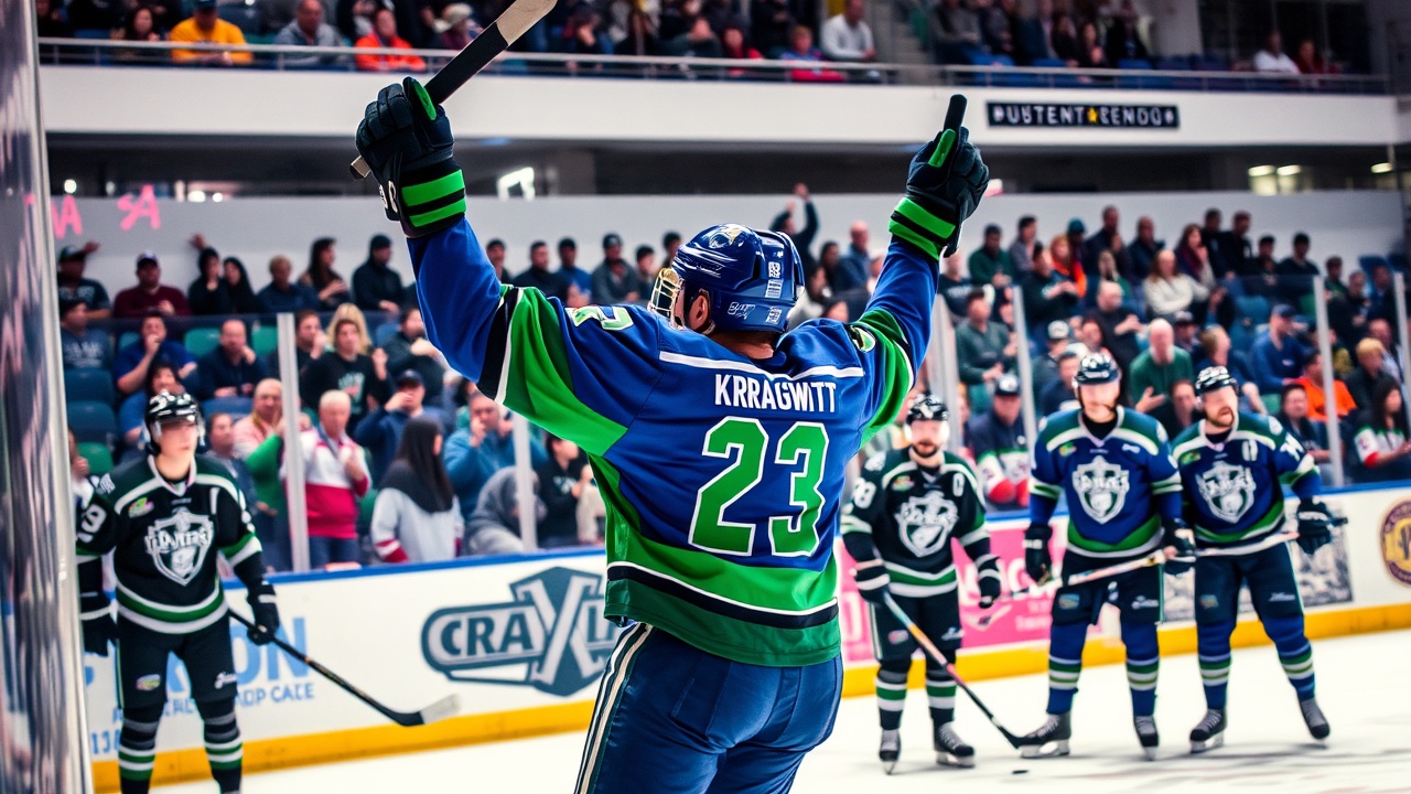 Kuzmenko verkürzte in der 10:27 Minute des zweiten Drittels in Überzahl auf 3:2, aber Wright stellte den Zwei-Tore-Vorsprung für die Kraken mit einem Überzahltor in der 5:50 Minute des dritten Drittels wieder her.