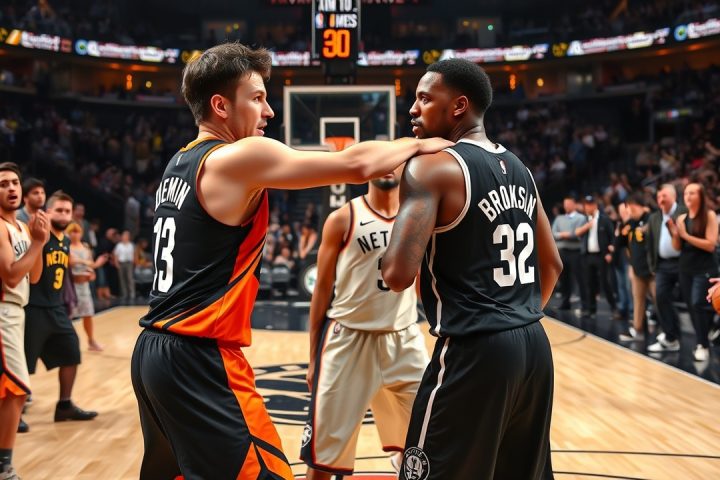 Basketball·Brooklyn·Dillon Brooks·Grayson Allen·Michael Porter Jr.· Egor Dёmin schubst Dillon Brooks in einem späten Spielkonflikt zwischen den Suns und Nets Januar 28, 2026 Editor Dillon Brooks und Egor Dёmin in Konflikt verwickelt Ein Rookie versuchte, Dillon Brooks eine Lektion zu…