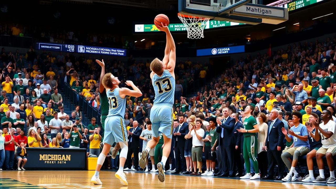 Nachdem Jeremy Fears Jr. einen Jumper gemacht hatte, um Michigan State mit drei Punkten auf 3:47 Minuten vor Schluss heranzuführen, traf Lendeborg im folgenden Angriff einen 3-Punkte-Wurf, der einen 10:2-Lauf einleitete, der den Sieg sicherte. Fears erzielte 22 Punkte und verteilte neun Assists, während Jaxon Kohler seine Karrierebestleistung mit 23 Punkten egalisierte und Carson Cooper 19 Punkte hinzufügte.